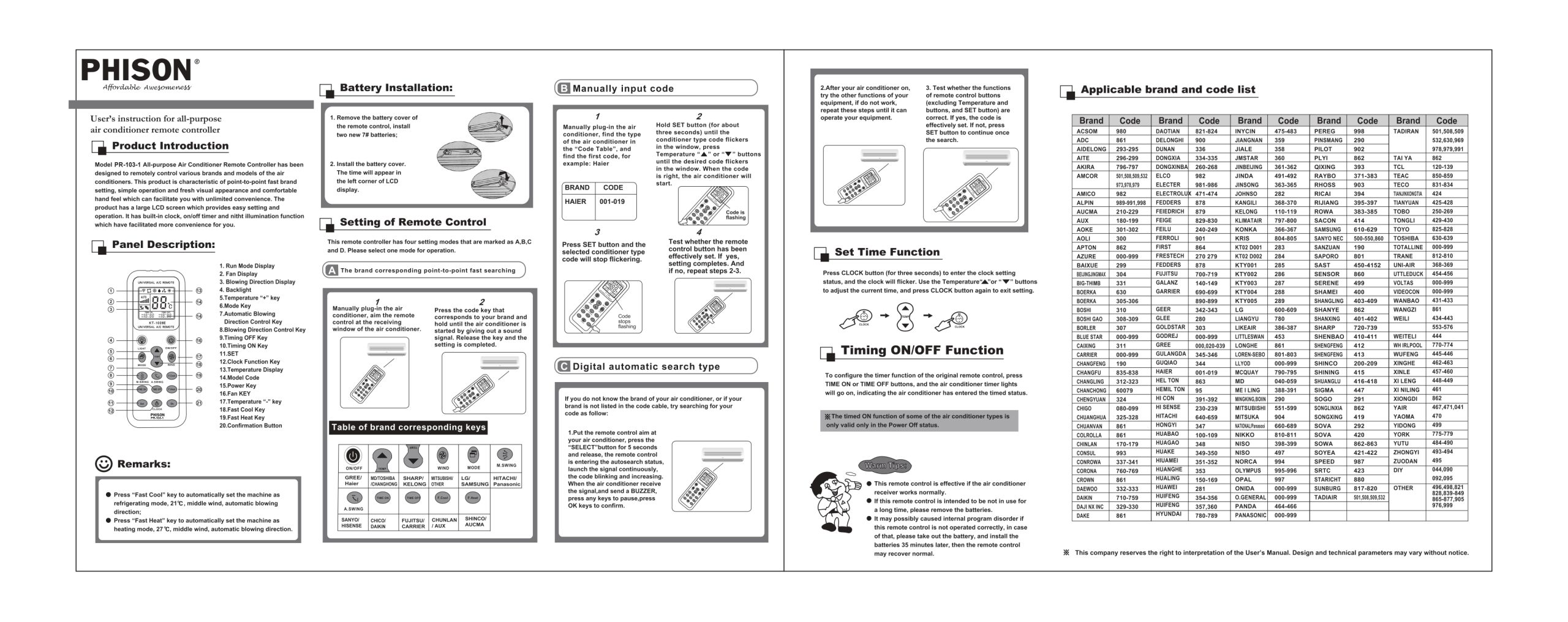 Phison Universal Aircon Remote Control